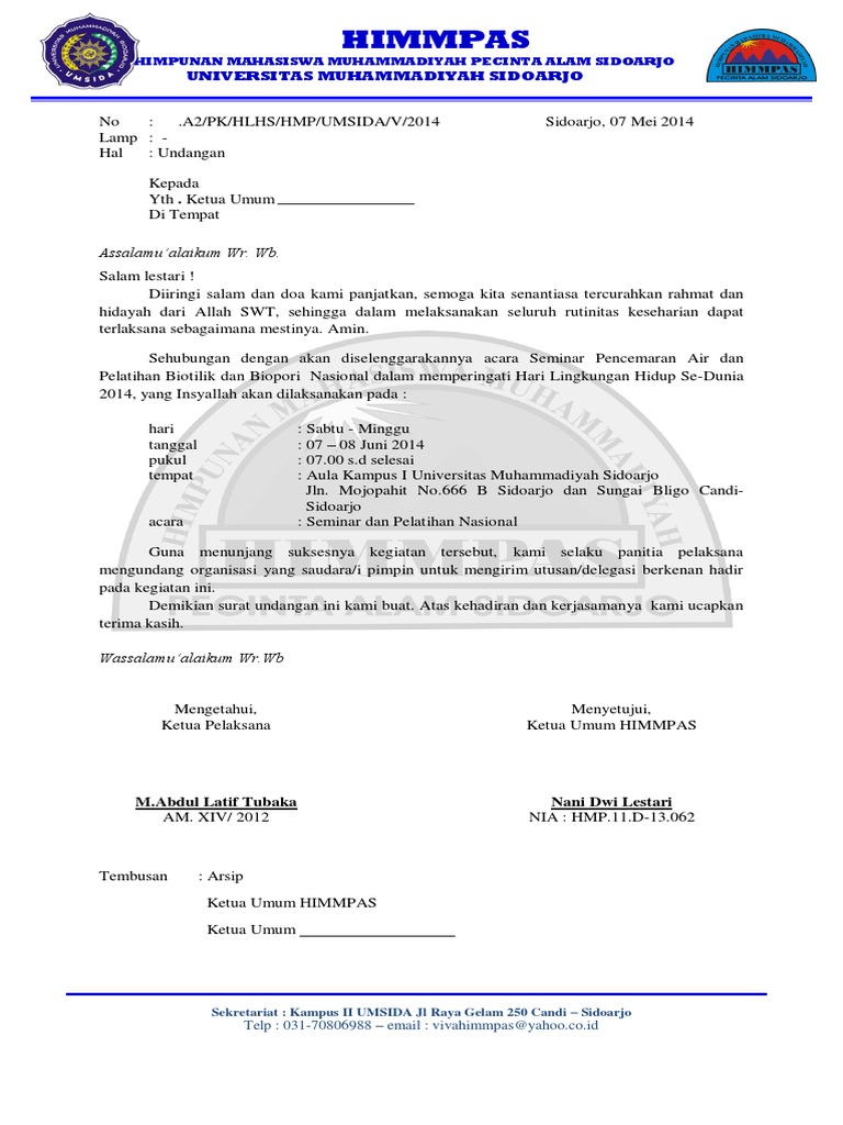 Contoh Surat Undangan Seminar Nasional Himpunan Mahasiswa Terbaru from 4.bp.blogspot.com Terdapat 10 orang yang dipanggil, termasuk ketua bem ui leon alvinda putra. Jun 28, 2021 · surat undangan kepada para pengurus bem ui resmi dibuat pada minggu 27 juni 2021 dan ditandatangani direktur kemahasiswan ui tito latif indra. Foto dokumen itu juga beredar di media sosial. Dec 16, 2014 · contoh umum yang masih salah adalah ketidaktahuan kode klasifikasi surat dan cara penulisannya. Untuk kode klasifikasi surat di lingkungan dinas pendidikan dapat kita temukakan dalam peraturan menteri dalam negeri republik indonesia nomor 78 tahun 2012 tentang tata kearsipan di lingkungan kementerian dalam negeri dan pemerintah daerah